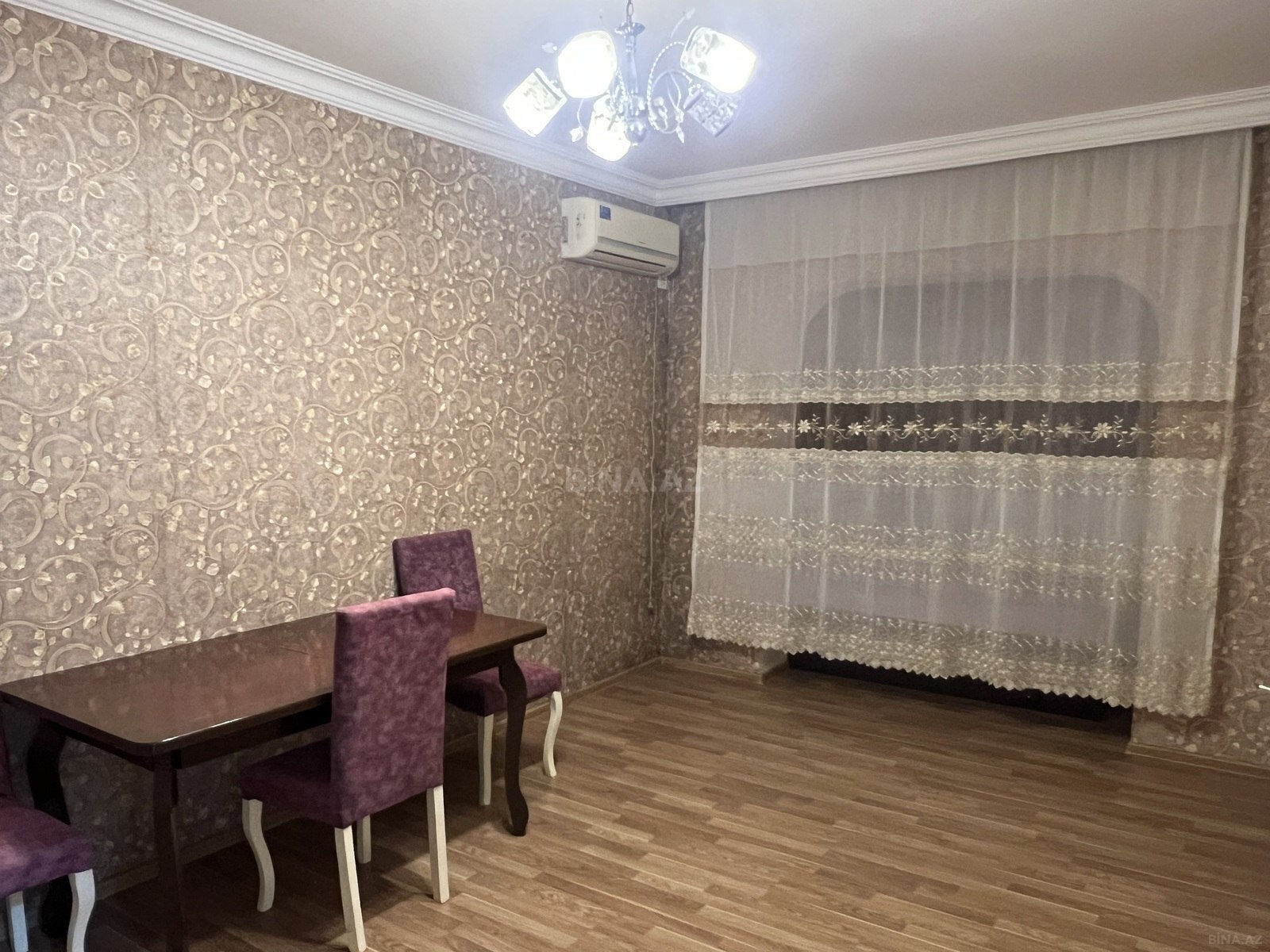 The house has just been renovated has never been lived in. Central heating system. The house is furnished. It is only available to a small family. The house is located very close to Nasimi metro station. You can call for more information.