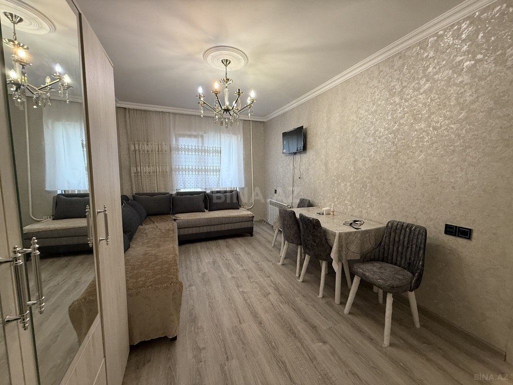 5/2 ci mertebesinde yerlesen 2 otaga duzelme 52kvm menzil esyalari ile birlikde yalniz uzun muddetli aileli sexslere icareye verlir