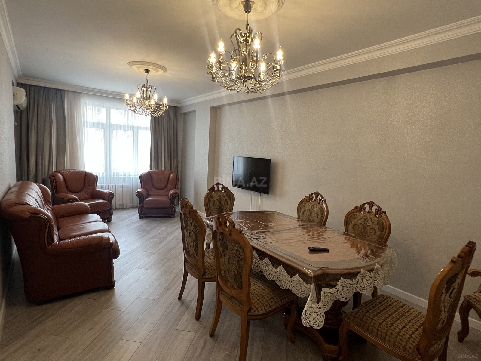 После ремонта никто не жил! Сдается 2-комнатная квартира в комплексе White Towers, Хатаинский район, рядом с МЧС, ул. Н. Рафиева. Площадь 72 кв.м, этаж 7/16, 1 балкон, 1 с/у, отличный ремонт, раздельные комнаты, паркет, KATV, интернет Wi-Fi, комбинированное отопление, встроенная кухня, полностью меблирована и оснащена техникой. Охраняемый двор, 2 лифта, наземная и подземная парковка.