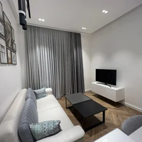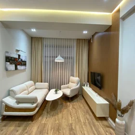 SEA BREEZE POLO RESIDENCE. Yeni əla təmirli, mebelli və texnikalı 2 otaqlı studio-mənzil (77 kv.m) uzun və qısa müddətə icarəyə verilir. Mənzil bütün yeni texnika (soyuducu, paltaryuyan, kondisionerlər, televizor-200 kanal, aspirator, elektrik sobası, hamam aksesuarları, wi-fi və
