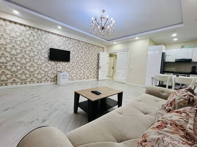 Heydər Əliyev mərkəzinin yanında,WhiteStone rezidensdə ,16 mərtəbəli binanın 8 ci mərtəbəsində yerləşir. Yeni tikilidir, mənzil yenicə təmirdən çıxıb və yeni avadanlıqlar və mebellər ilə təmin olunub.Evdə heçbir köhnə məhsul yoxdur, TV,kondisionerlər,paltaryuyan,soyuducu,mikrodalğalı soba, mətbəx mebeli aspiratoru,qaz bu kimi avadanlıqlarla tam təchiz olunub.evin iki otağa çıxışlı böyük BALKONU VAR. Qonaq otağının pəncərələri fransız balkondur.evin qazı,suyu,işığı daimidir! Bina tam mühafizə olunur.kənar şəxslər binaya buraxılmır.Binanın həyəti fotolardaki kimi möhtəşəmdir. Həyətdə süni göl, su hovuzları, futbol meydançası, uşaqlar üçün əyləncə guşəsi, idman trenajorları, bir sözlə hərşey va ...