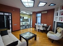 Mərtəbə: 5/20. Ümumi sahəsi 95 kv.m., Parket döşəmə, döşəmə qızıdırıcı, hündür tavan. KATV, internet - Wi-Fi. 1 plazma TV. Quraşdırılmış mətbəx mebeli və texnikası. Istilik sistemi “Kombi”, 2 split-kondisioner. 1 açıq eyvan. 2 s/q (duş-kabinə). Mühafizə olunan geniş və gözəl həyəti, uşaq meydanças varı. Müşahidə kameraları