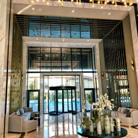 The apartment is located next to Caucasia otel, on Tblisi pr, in one of the most elite and prominent places of the city, in the premium class "Grand Hayat" residential complex.