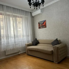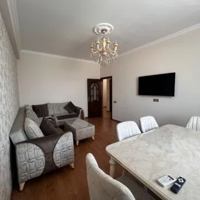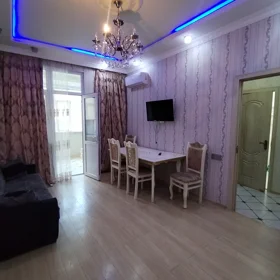 Mənzil 7 ci və 6 cı palel küçələrinin arasında M. Muxtarov 185b ünvanında yerləşir. Mənzildə hər bir şərait var. 2 ədəd LCD TV 2 ədəd condisioner, paltar yuyan, qab yuyan, soyuducu, mikrodalğalı soba. Kabel TV və sürətli fiber optik internet. Qizdirma sistemi kombidir. Yaxınlıqda bütün ifrastruktur var. 2 ədəd supermarket, kimyəvi təmizləmə, restoran, aptek, fitness və hovuz zalları, restoran, bar və s. Qlobus və Kaspian plaza 2 dəqiqəlik piyada yürüşündədir. Qiymətə komendant və damafon pulu daxildir. . 140 manat. 150 manat deposit qoyulur 10 ayın tamamında qaytarılır.