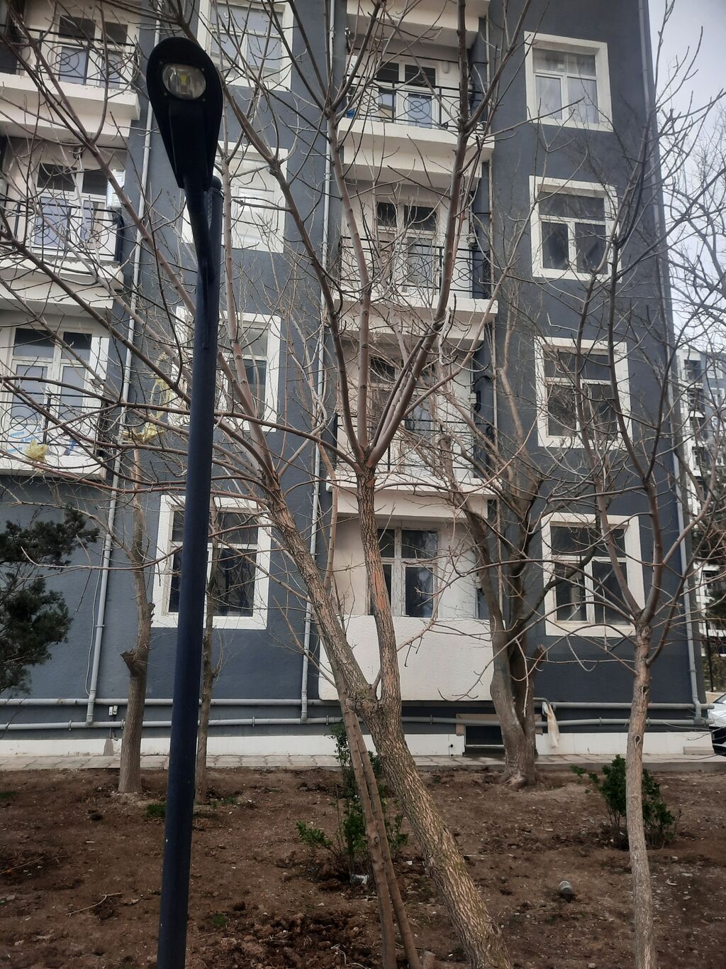 Ünvan: Aşağı güzdək qəsəbəsi, Sahesi 64m² 2 Balkonu var, - Layihə: çoxmərtəbəli, müasir fasadlı bina, təmirli giriş və həyət.
