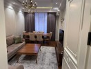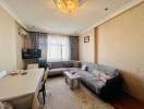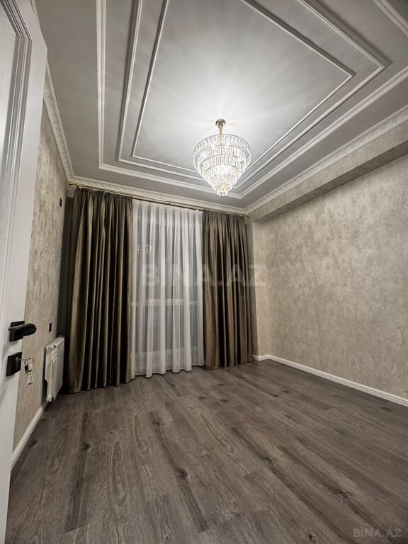- Geniş və işıqlı yataq/istirahət otağı: yumşaq başlıqlı ikinəfərlik çarpayı, iri güzgülü qarderob dolabı, tualetka (güzgü və komod), divan, uzun oturacaq (banket), dekorativ xalli masa, TV , divarda qızılı-kristal çilçıraq və treklı işıqlandırma, ağac naxışlı divar kağızı, laminat döşəmə.