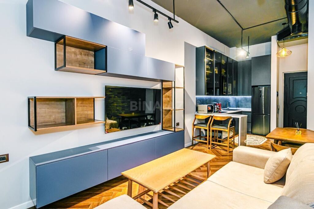 Mənzilin quraşdırılmış mətbəx mebeli, eyvanı, kombi sistemi və s var.