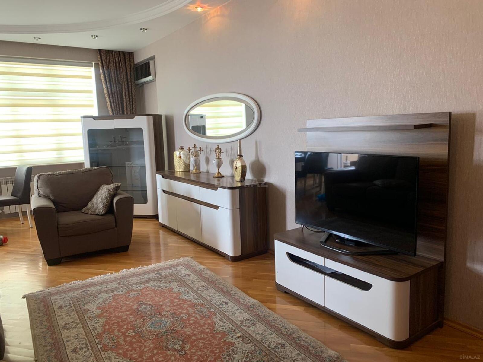 Mərtəbə: 5/33. Ümümi sahəsi 115.,1 geniş eyvan. 1 Plazma TV, KATV, Yüksək sürətli FİBER Optik internet - Wi-Fi. Mərkəzləşdirilmiş istilik, soyutma və havalandırma sistemi. Mətbəx mebeli və texnikası + qabyuyan maşın. Mətbəx-studiya. 2 s/q (cakuzi, duş–kabinə). Camaşırxana. 3 sürətli və səssiz liftlər, 24 saat mühafizə olunan geniş həyəti, müşahidə nəzarət kameraları, 3 mərtəbəli yeraltı avto dayanacaq.