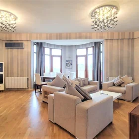 Nur MTK yaşayış kompleksində tam təmirli mənzil uzunmüddətli icarəyə təklif olunur. – Mənzildən şəhərə möhtəşəm mənzərə açılır, hər otaqdan eyvana çıxış var. Ümumi məlumat: Kombi istilik sistemi 3 ədəd kondisioner 24/7 mühafizə Yer üstü avtodayanacaq 3 Sürətli lift Özəl həyət Sakit və nüfuzlu qonşuluq Qiymət: 3 otaqlı (140 m²) mənzil – 1500 AZN