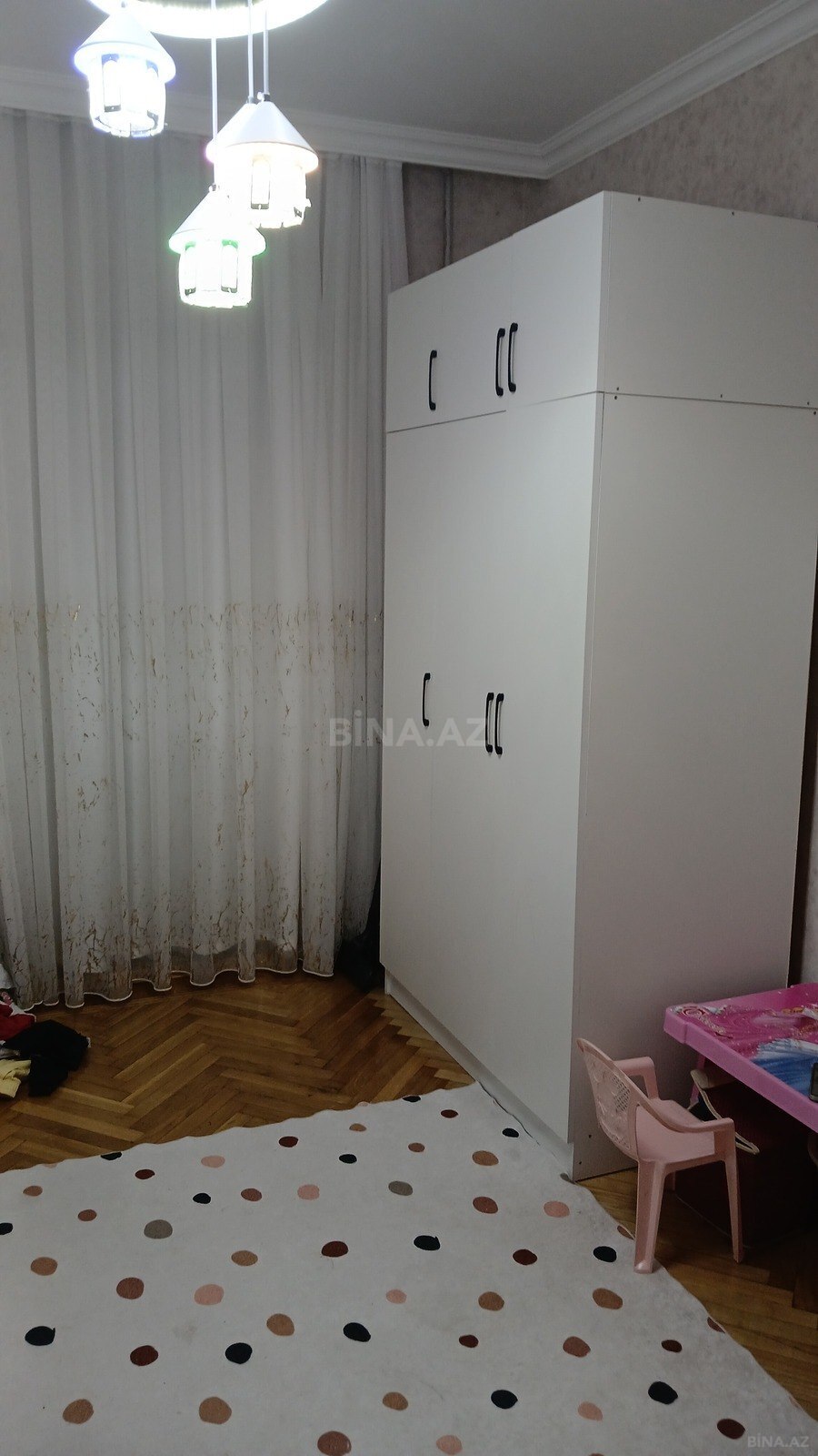 Insaatcilar metrosu ve ASAN Xidmetle arasinda, Serifzade kucesi, “BRAVO” yani, SafSu ile uzbe uz, umumi sahesi 70 kv m olan, 3 otaqli menzil satilir. Mertebe 5/5, yelcekendir, yaxsi temir, qurasdirilmis metbex mebeli, 2 eyvani, qazi, suyu, isigi daimdir, istilik sistei kombi. Butun senedler qaydasindir CIXARIS VAR. Yaxinliqda usaq baxcasi, mekteb, dayanacaq, marketler ve diger iase xidmeti obyektleri yerlesir.