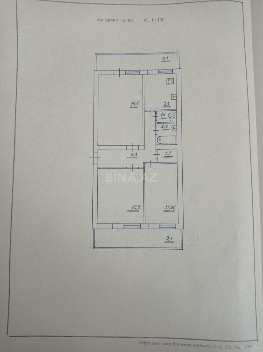 Satılır 3 otaqlı 90 m2 köhnə tikili İnşaatçılar m.