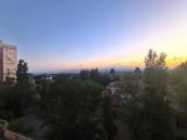 Şəhər mənzərəsi və gün düşən geniş otaqlar