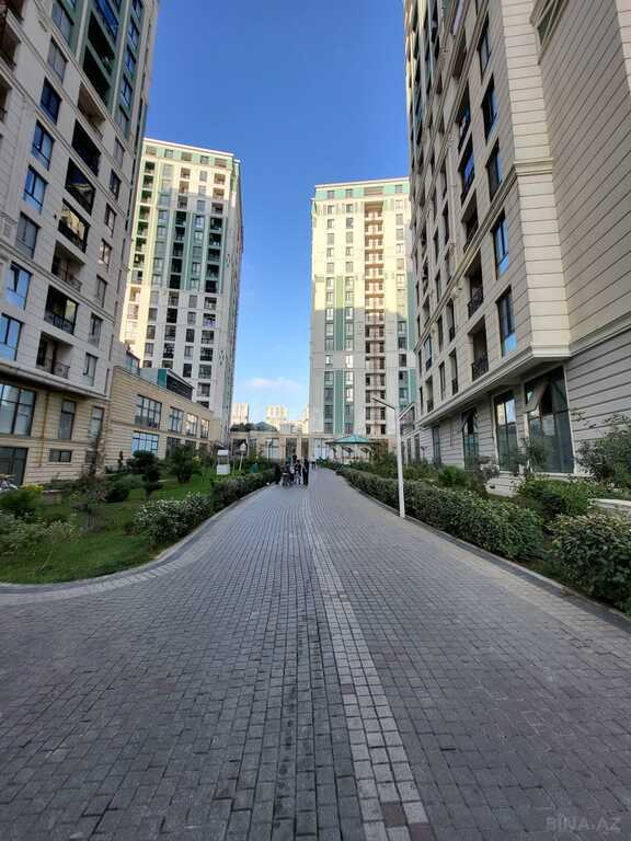 Mənzil yeni tikili 10 mərtəbəli daş binanın 9-cu mərtəbəsində yerləşir. Binanın bütün mərtəbələri daşdır. Geniş həyəti var. Həyətdə mühavizə və kamera sistemi mövcuddur. Həyətə sakinlər üçün şlaqbaum qoyulub. Bina və həyət hər gün təmizlənir. Binanın qazı, suyu, işığı daimidir.
