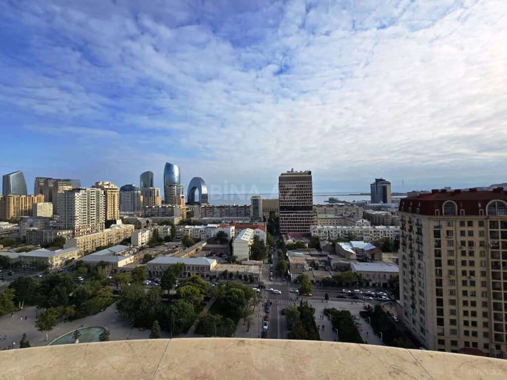 Fərəh MTK binasında - 28 may metrosunun yanı. 173m2 4 otaqlı yeni əla təmirli mənzil 15-ci mərtəbə. Biri böyük 2 sanuzel (vanna və duş kabinalı) mövcuddur. Mərkəzi istilik sistemi, kondisionerlər (Mitsubishi firması - bütün otaqlarda). Təbii palıd ağacından parket. Mebel və avadanlıqlar ən yüksək keyfiyyətdə. 3 lifti var, Həyətində parkinq imkanı var, 28 may metrosunun əsas çıxışından 25 metr məsafədə. Dənizə, alov qüllələrinə, bayraq meydanına möhtəşəm mənzərəsi var. Bir tərəfi də Səməd Vurğun bağına baxır. Mənzil mənə məxsusdur.