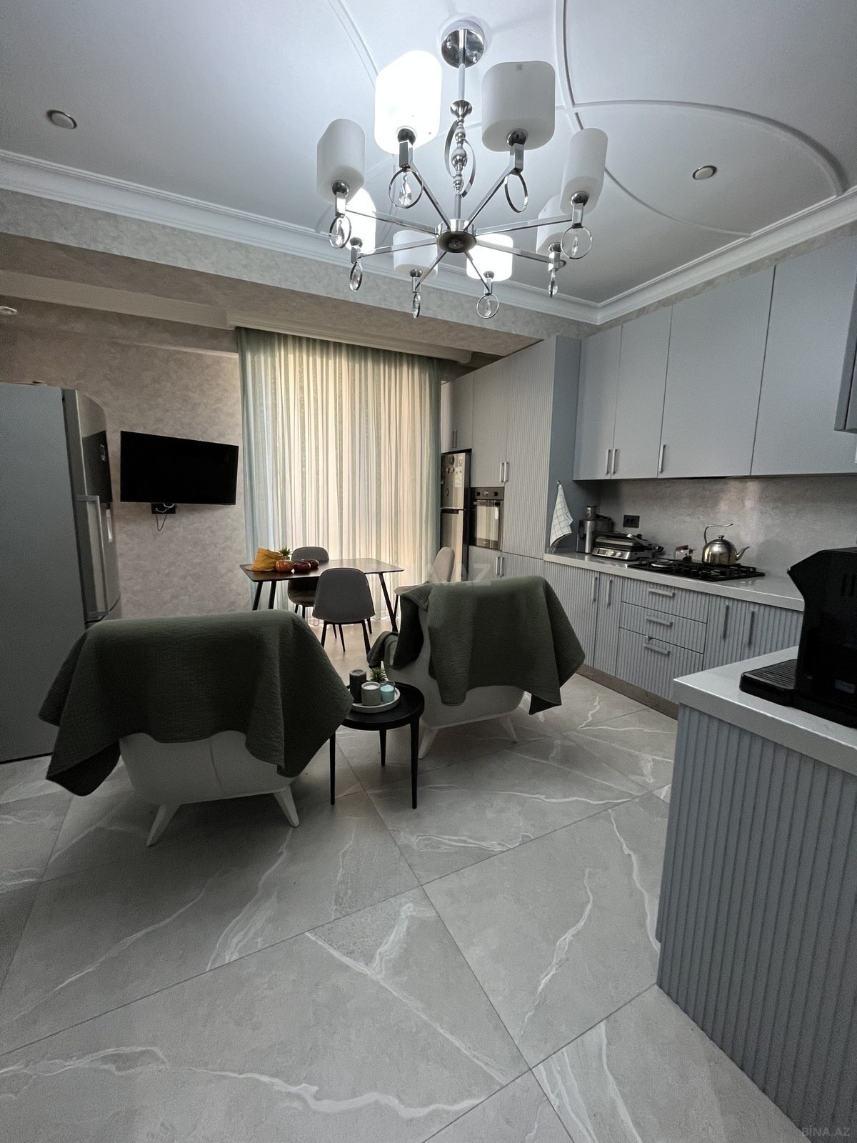 4 otaqlı mənzil – tam mebel və dekorla