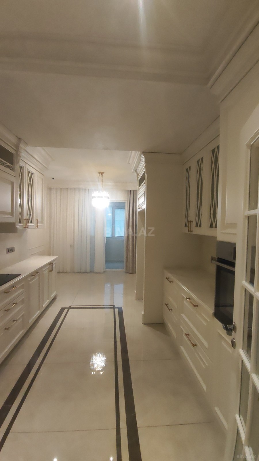 - Dizayn: dekorativ tavan panelləri və çoxnöqtəli işıqlandırma, zərif çilçıraqlar, klassik naxışlı divar kağızları, taxta qapılar və plintuslar.