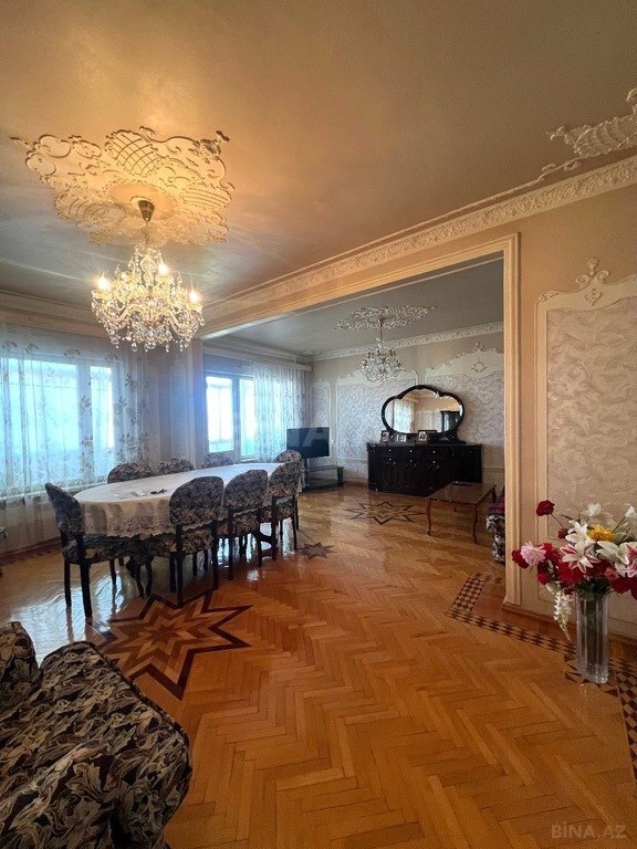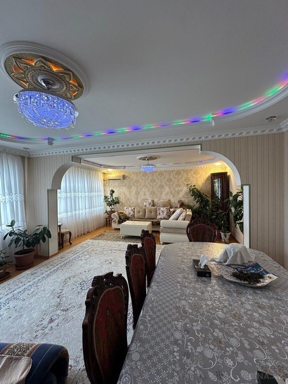 В центре городе, в двух шагах от бульвара, рядом с рестораном «Чинар» и Фуникулером, в зеленом, хорошо охраняемом районе 5-комнатная квартира с двумя санузлами.