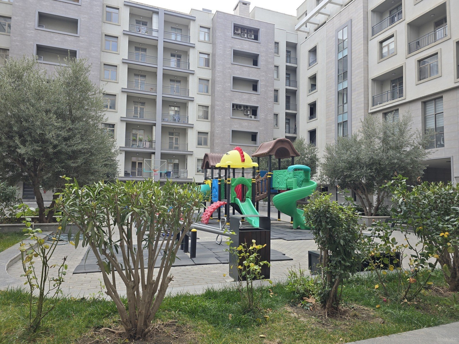 - Uşaq oyun parkı, basketbol və idman meydançaları