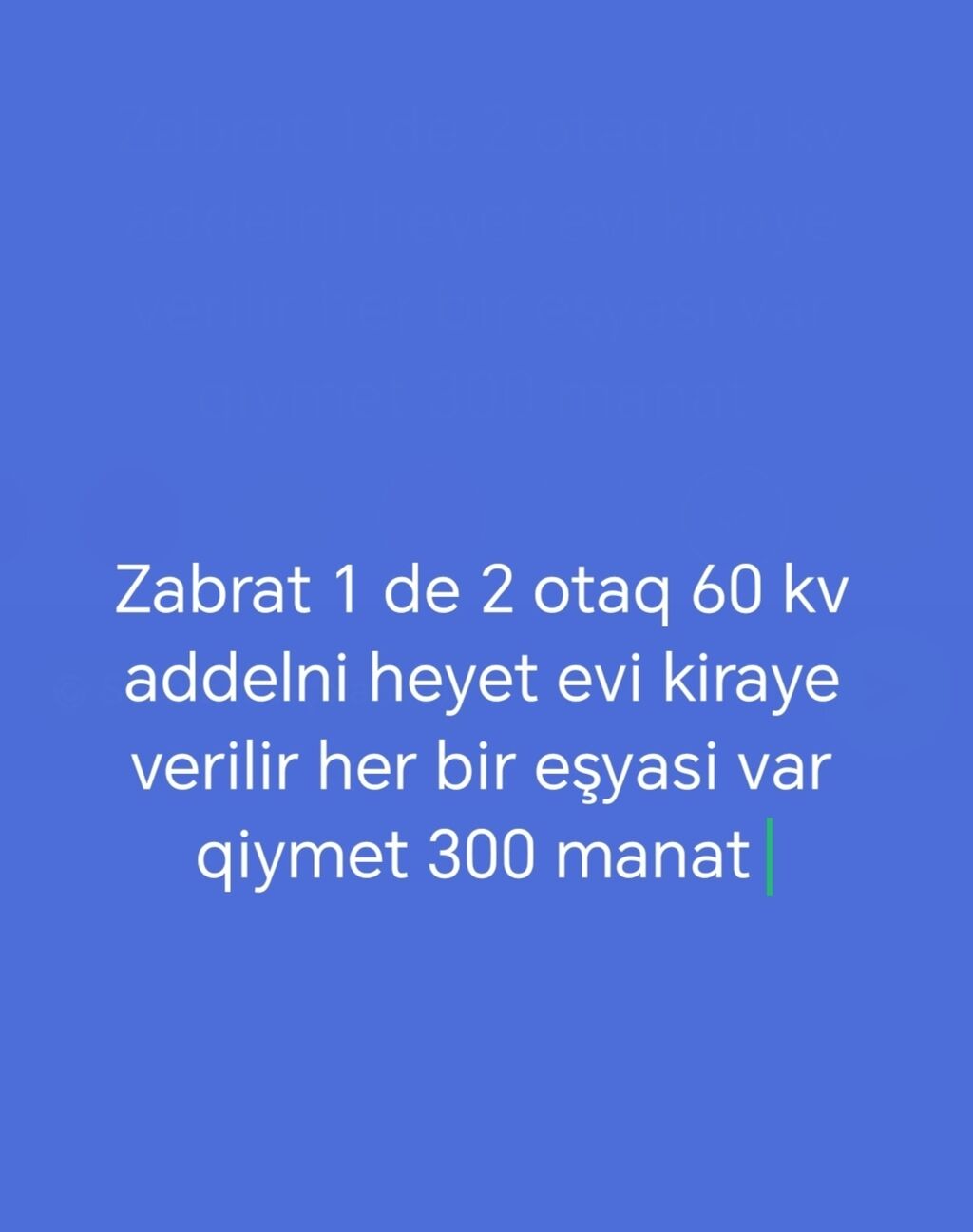 Zabratda 1 de 2 otaq addelni heyet evi kiraye verilir qiymet 300 manat real adamlar və ailə yazsin ofis haqqi var
