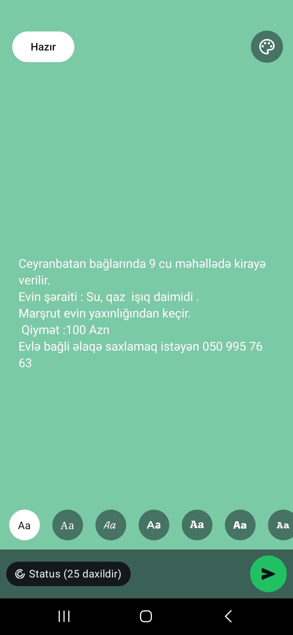 EV HAZIRDA KİRAYƏDƏDİR. ALICININ İSTƏYİNDƏN ASLIOLARAQ KİRAYƏ DAVAM EDƏ BİLƏR