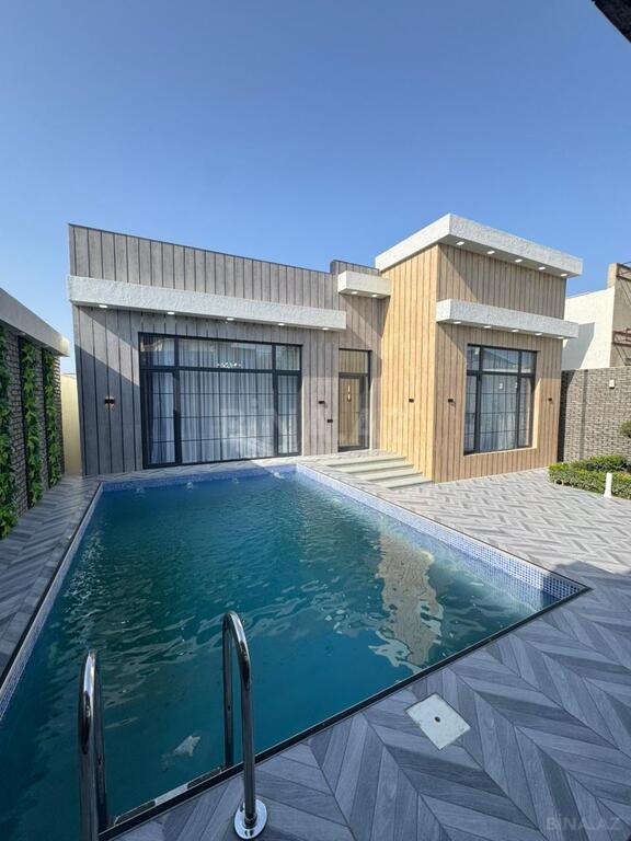 Həyətində hovuzu, yay-qış mətbəxi, manqalı, geniş yaşıllıq ərazisi, müxtəlif növdə dekorativ ağacları və maşın saxlamaq üçün sahəsi var.