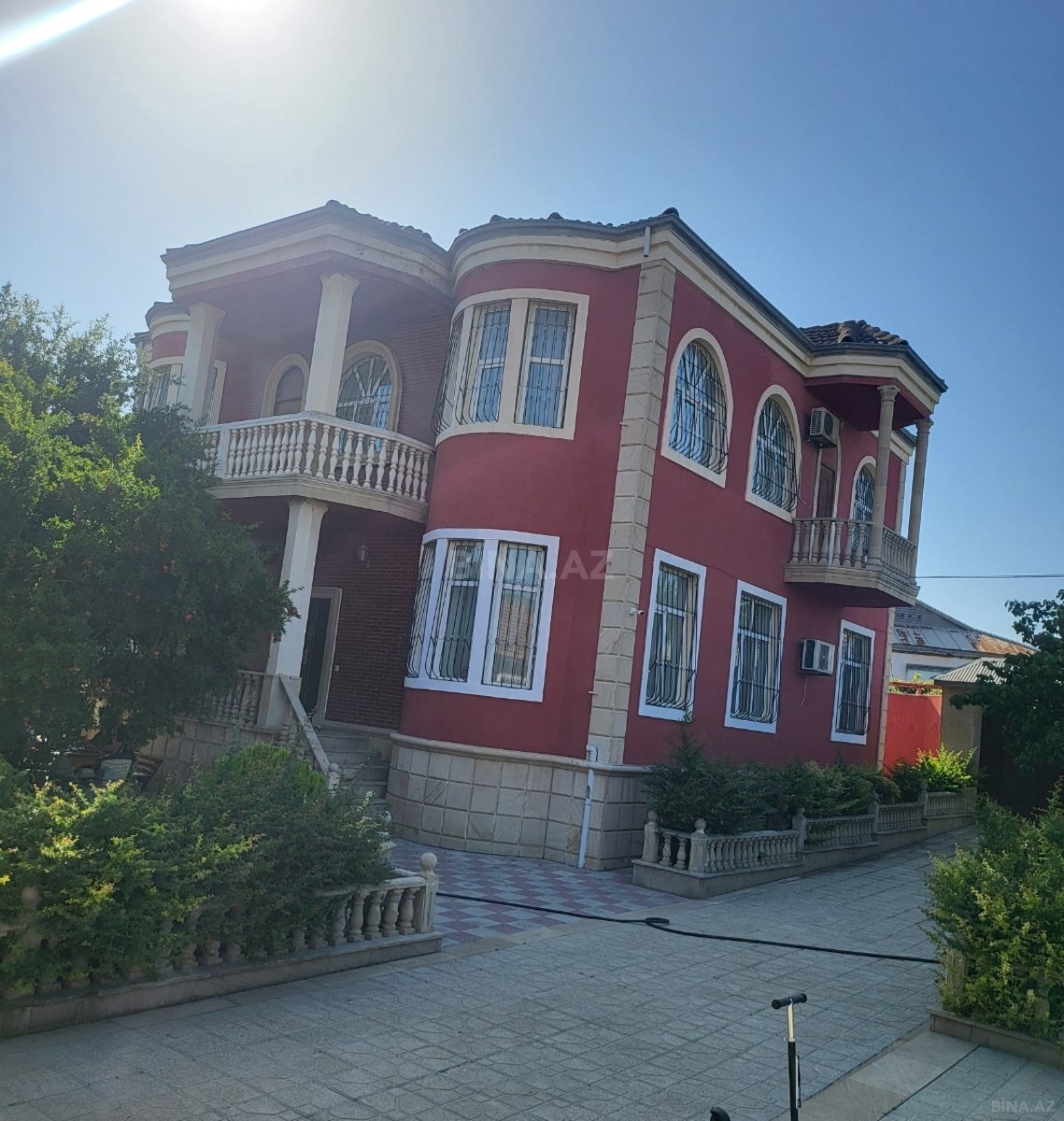 Sahə: 370 m², torpaq: 3 sot, 8 geniş otaq, 2 mərtəbə + mansard.