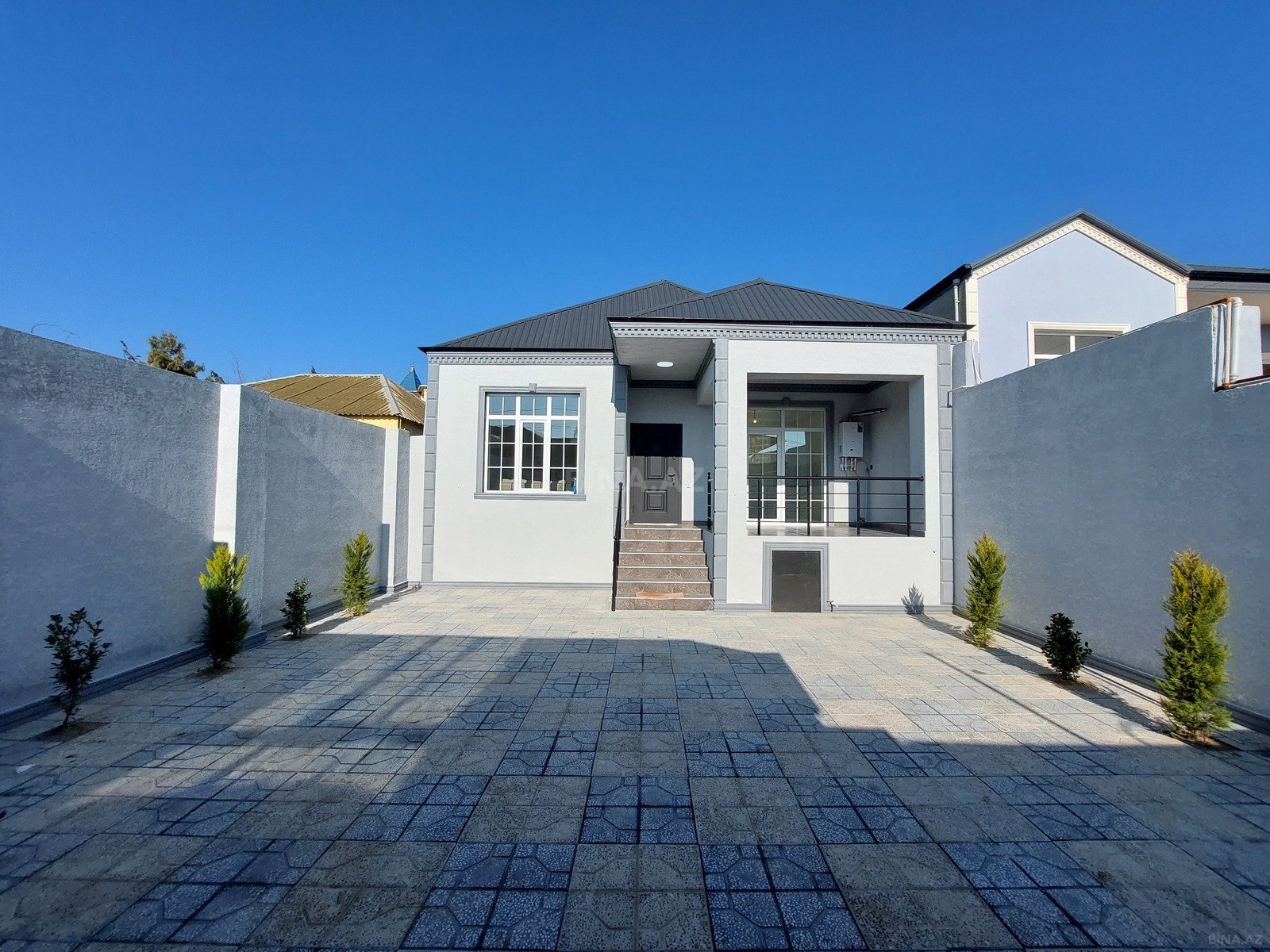 - Kommunikasiya və təhlükəsizlik: Dəmir giriş qapısı, pəncərələrdə barmaqlıqlar, həyət işıqlandırması.