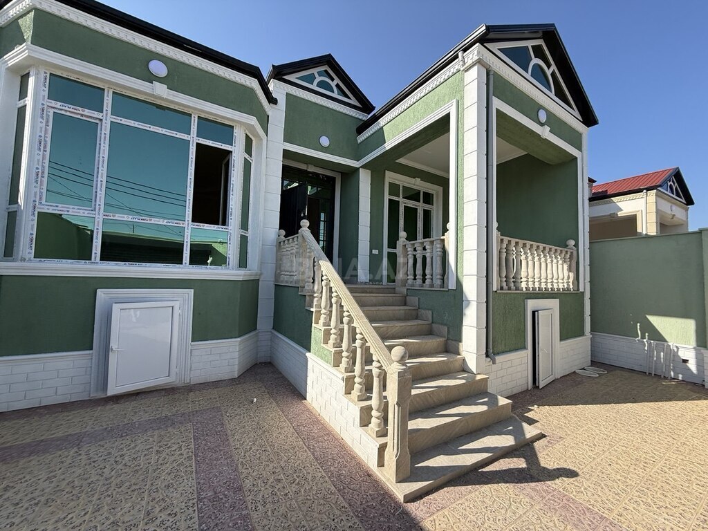 Satılır: həyət evi - İki mərtəbəli, fasadı aqlı rəngdə ev; metal giriş qapısı - Həyətə qədər hasarlanmış sahə, geniş giriş yolu - Otaqlarda iri pəncərələr, işıqlı tavan lampaları - Döşəmə: taxta fakturalı laminat - Divarlar: naxışlı, açıq tonlarda divar kağızı - Pəncərə altı mərmər sillər - Kommunikasiya üçün yeni xəttlər: mərkəzi qovşaqda mavi (soyuq su), sarı/ağ (qaz/istilik) və elektrik kabelləri səliqəli şəkildə çəkilib - Girişdə və otaqlarda priz/şalter yerləri hazır - Həyətdə tikinti materialları üçün sahə Əlavə məlumat üçün şəkillərə baxın.