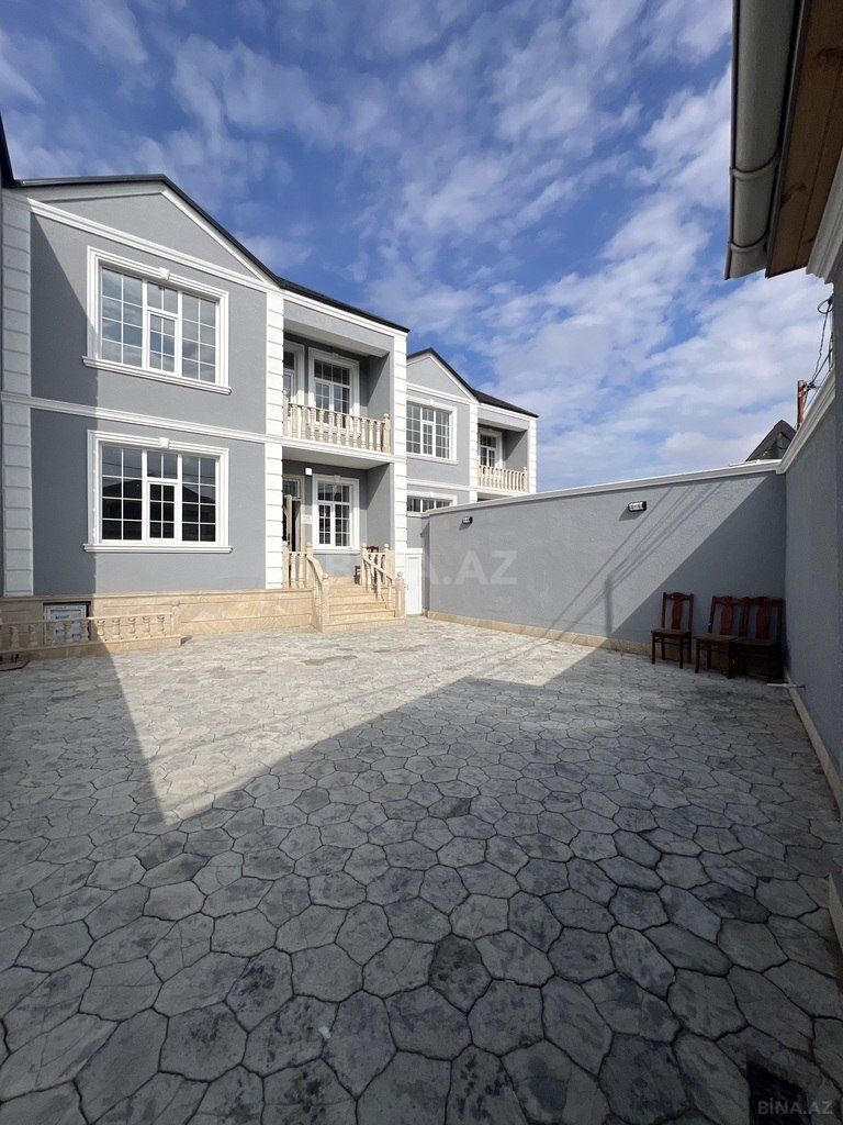 Villa Masazır Yeni Bakı Yaşayış kompleksinə bitişikı, Zərifə Əliyeva Adına qəsəbədə, 1 ci cərgədə yerləşir, 3 sotun içərisindədir, torpağında evində kupçası (çıxarışı, şəxsi mülkiyyətdir) var, 230 kvadratdır 2 mərtəbədir, əlavə olaraq 115 kvadrat podvalıda mövcutdur, mərtəbələrarası betondur. 3 fazalı işiq sistemi, 24 saat kamera Mühafizə sistemi, həyətdə yay mətbəxi, kombi isitmə sistemi, həyətdə yerin döşəməsi aqlaydır. Real müştərilər əlaqə saxlasın. Sıx məskünlaşmız ərazidir yaxınlığında supermarketlər və digər iaşə obyektləri mövcutdur, sakit məhlədir. Maklerlər narahat etməsin.