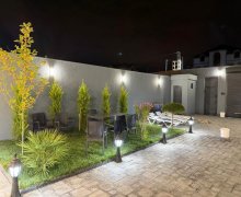 • Həyətində gəniş filterli hovuzu,besetka, manqalxana, pultla idarə olunan darvaza, yaşıllıq ərazisi, dekorativ ağacları və gülləri, su anbarı, qaraj,sensorlu gecə işıqları var.