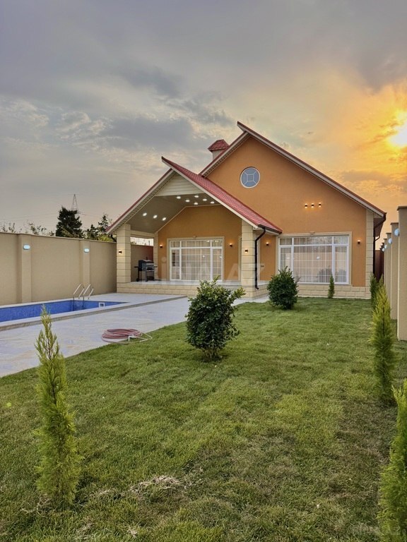 bag evi satisha cixib.,Evin umumi sahəsi 170 kv, 4 otaqdan ibarətdir.1-zali 3 yataq otagi.mətbəxi.3 sanuzel var.Hündür tavanlı, zövglə təmir edilib. istilik sistemi kobidir. Keyfiyyətli tikinti materiallarından istifadə olunub.Həyətində yay mətbəxi,basseyn,manqalni,besetkasi var.Ev tam infrastrukturlu yerdə yerləsir və il boyunca yasamaq ucun yararlidir. I