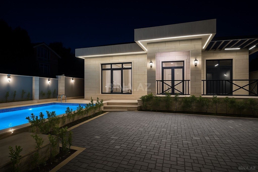 Novxanı Murad marketın sol terefi Rest time restorana yaxın 3.5 sot torpağın ustunde 120 m2 , 3 ayri yatag otaglari,1 genis zal ve ayri metbexi + 2 sanuzeli var..Metbexden terasa cixis ve stol stul ucun yeri, barbekyu zonasi sohbetkes ,ordada stol stul bagmebeli var. Yaninda moykasi..Avtomatik giris qapisi. Filtr motorlu baseyni ve pultla idare olunan isiqlanmasi tam hazırdır...157000 azn ofis haqqı 1%