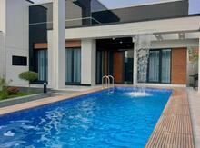 Bakı Bağları şirkəti sizə ekoloji təmiz Mərdəkan qəsəbəsində, yoldan 100 metr məsafədə 5 Sotda 1 mərtəbə 220 kv.m 5 otaqlı super bağ evini təklif edir. Bağ evi zal, mətbəx, 4 yataq otağı, qarderob, geniş holl və 2 sanuzeldən ibarətdir. Otaqlarda asılmış pərdə və lyüsturları, duş kabinalı sanuzeli, mebelli mətbəxi, quraşdırılmış işıqlandırma sistemi var. Ev yüksək zövq və keyfiyyətlə təmir olunub. Su, qaz, işıq daimidir. İstilik sistemi kombidir, isti döşəməsi var. Həyətində geniş filterli hovuzu, şəlaləsi, cambalkon besedka, yay-qış mətbəxi, stol-stul, terras, yelləncək, manqalxana, söhbətgah, qaraj, pultla idarə olunan darvaza, yaşıllıq ərazisi, dekorativ ağacları və gülləri, sanitar qovşa ...