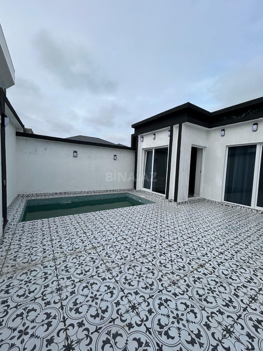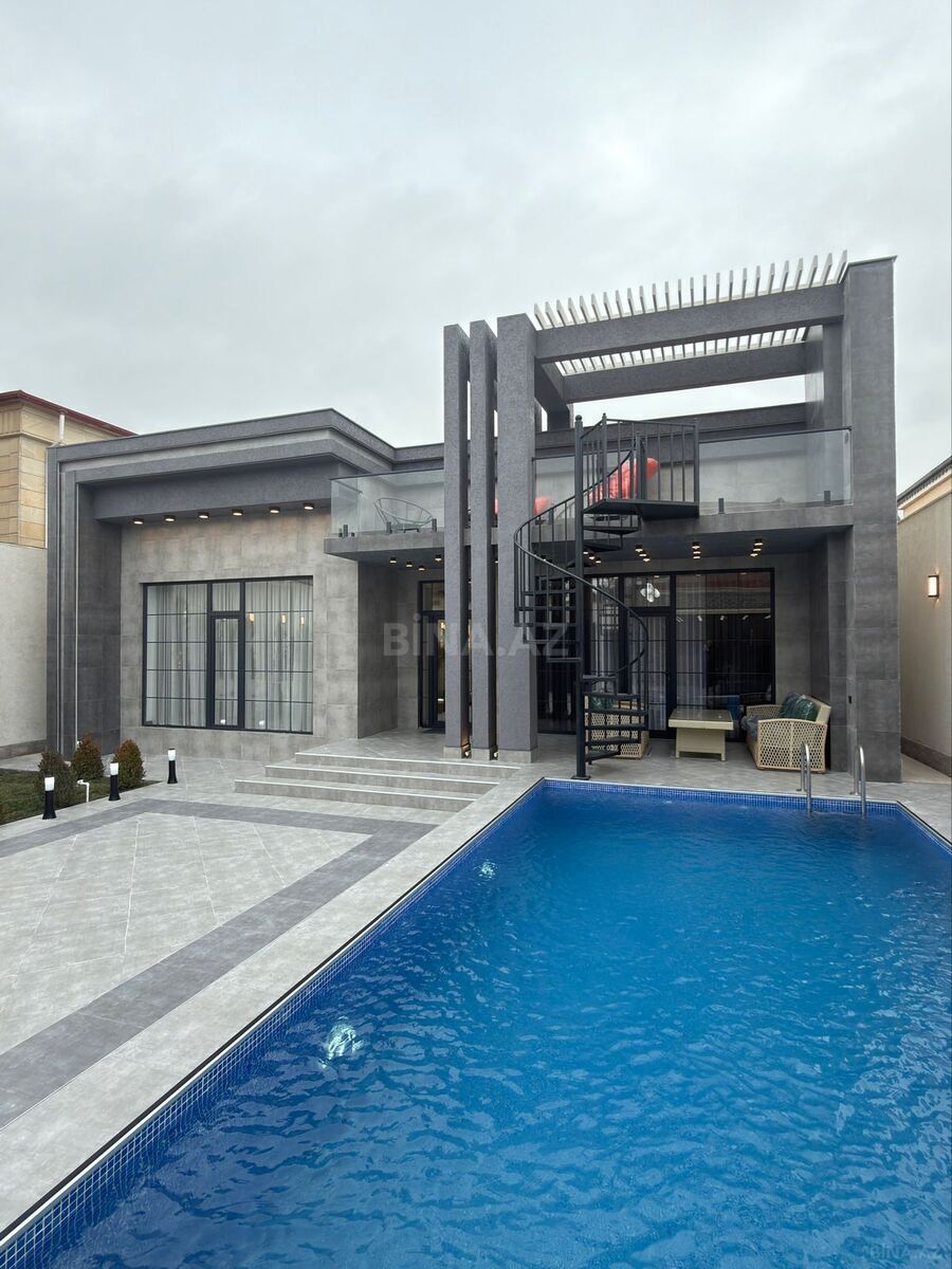 Mərdəkanda (Bravo yolu, Yeni Araz marketin yanında), 4 sot torpaqda, yol kənarında yerləşən, fərqli dizaynda inşa edilmiş 2 mərtəbəli, 5 otaqlı modern bağ evi satılır. 4 yataq otağı, geniş zal, mətbəx, qarderob, 4 hamam otağı, isti döşəmə (kombi), filterli daşma hovuz, manqal, terras, yay mətbəxi (besetka), açıq qaraj. Qaz, su, işıq – dövlət xətləri ilə. Çıxarış (kupça) mövcuddur.