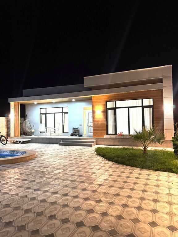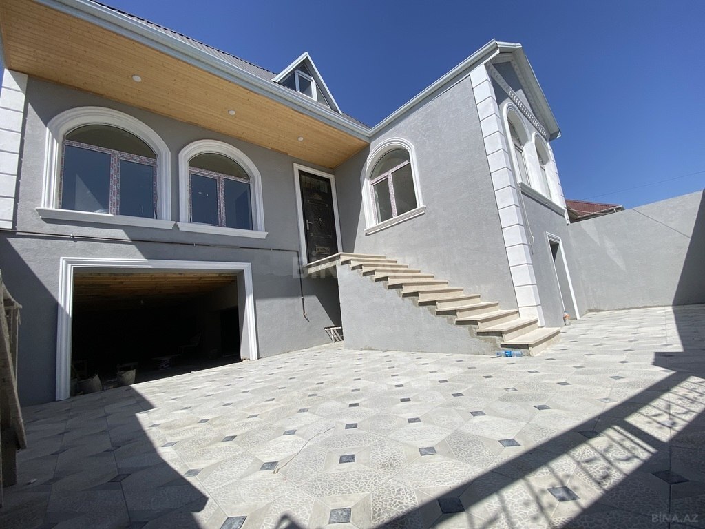 Şəxsi tikilidir Torpaq 13 sot Ev 350 m² 5 yataq 1 Zal 1 Metbex 4 sanitar qovsagi İsidilmə sistemi isti doseme ve otaqlar radiator 32 tonluq ehtiyyat su anbar var. Ara kesmeler betondur dam daxil. Su,qaz,isiq cekilib Isiq xetti 3 fazadir Kombi qurasdirilib,qaz 6 kubluqdur Sambo 60 kubluq Sauna,sohbetgah var. Paket kupca Bag esas yoldan 150 metr aralida yerlesir