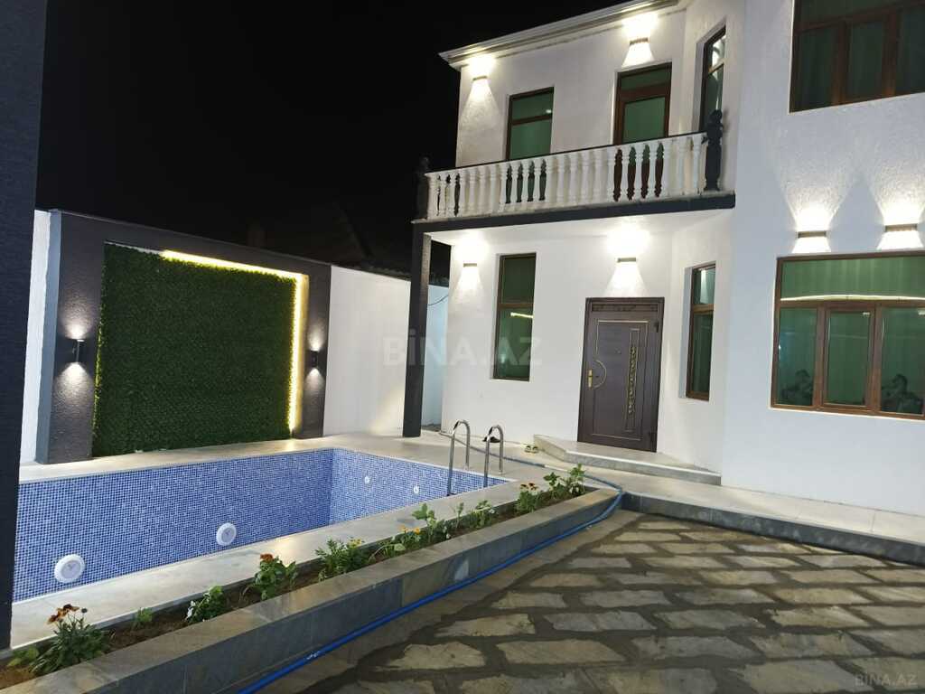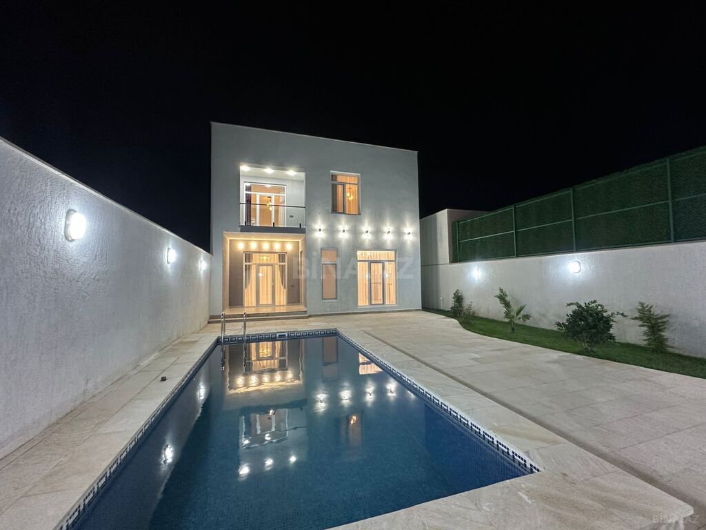 450.000 AZN start Endirim olacag✨ Merdekan qesebesinde villalar olan məhəllədə 8sot bağ evi satılır. Ümumi sahəsi 260 kv.m olan bu bağda, 5 otaq var: 1genis qonaq otağı, 3 yataq otağı, 2sanuzel , mətbəx, qarderob,xoll vardir.Mətbəx mebeli və sanuzellər quraşdırılıb,lyüsturlar və pərdələr asılıb.Heyetinde geniş filtirli hovuzu, bisetkasi , manqalni, dekorativ aqaclari , sensorla olan gece isiqlari, sanitar qovsagi var.Darvaza pultla idarə olunur.Evin tikintisində keyfiyyətli tikinti materiallarından istifadə edilmiş və çox səliqəli inşa edilmişdir.Qaz,su, işıq daimidir. Senedleri qaydasındadır (Kupca)