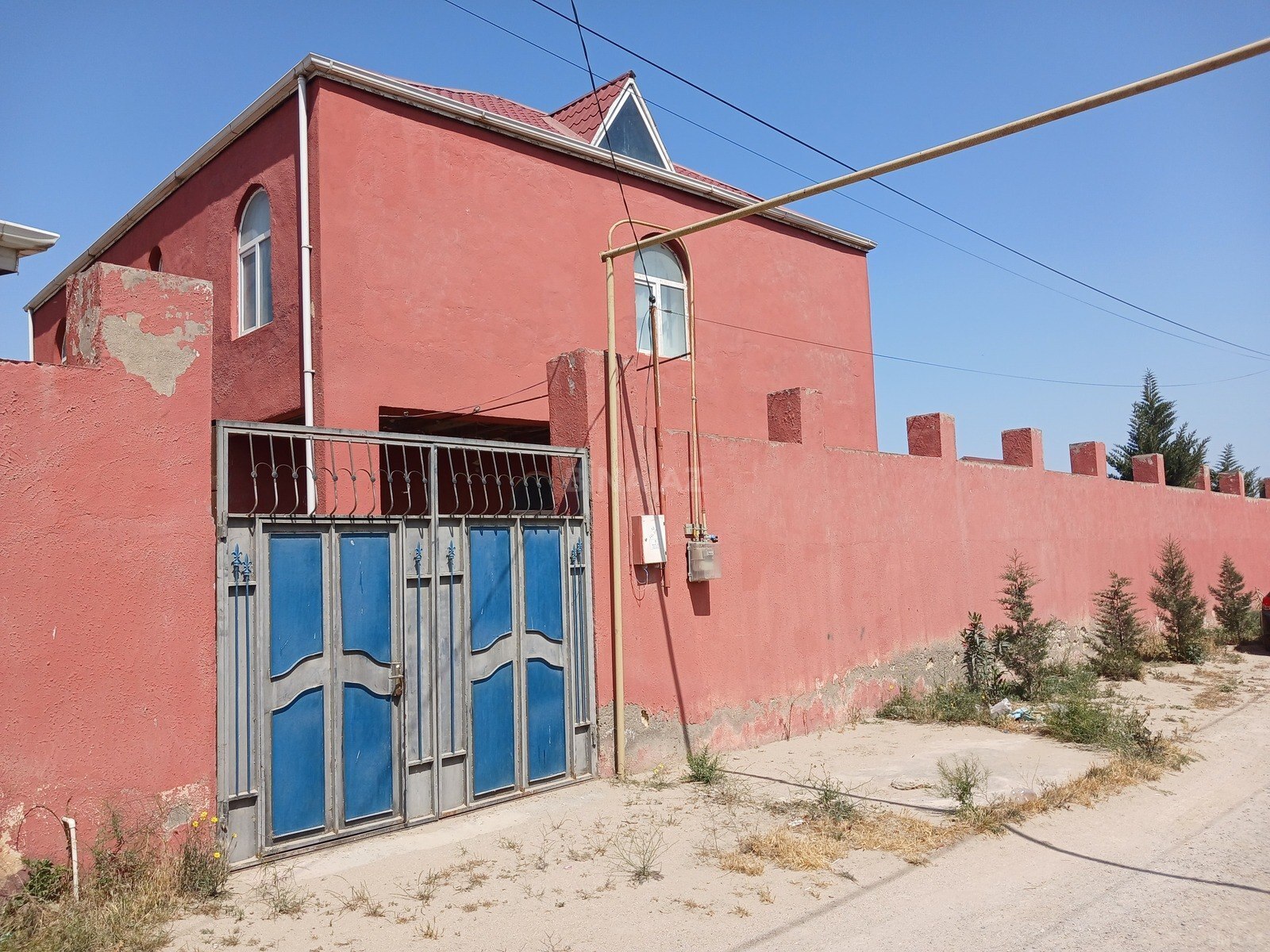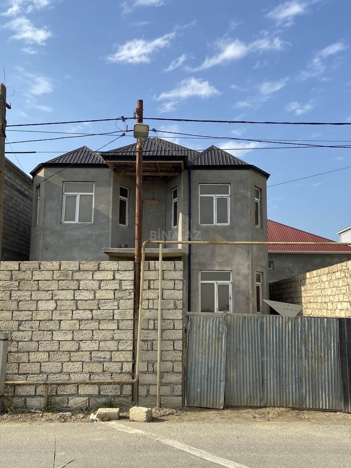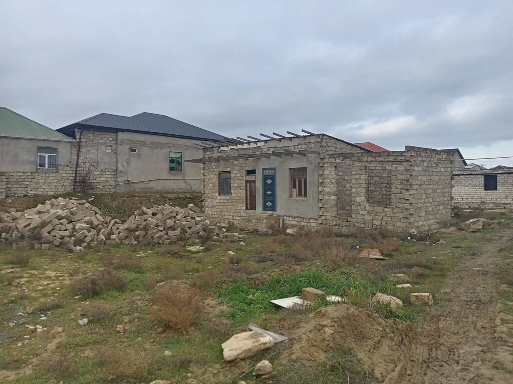Satılır: yarımçıq tikili və torpaq sahəsi - Tikili: birmərtəbəli, bünövrəli daş konstruksiya. Divarlar qalın daşdan hörülüb, fasadın bir hissəsi aqlay/şpaklyovka ilə işlənib. Girişdə dəmir qapı, ön və yan tərəfdə pəncərə yerləri hazırdır. Dam üçün metal karkas/mera yerindədir (örtük tamamlanmamış). - Planlama: 2-3 otaq üçün uyğun həcm; mətbəx, sanitar qovşağı və dəhliz üçün ayrılma imkanı var. Evin perimetri genişləndirmə üçün şərait yaradır. - Kommunikasiyalar: məhəllədə elektrik və su xətləri mövcuddur (ərazidə yaşayış evləri var). Kanalizasiya üçün çən/kollektor quraşdırmağa yer ayrılabilir. - Torpaq: düz relyefli, həyətyanı sahə genişdir; avtomobil girişi, bağ-saray, yardımçı tikili və ...
