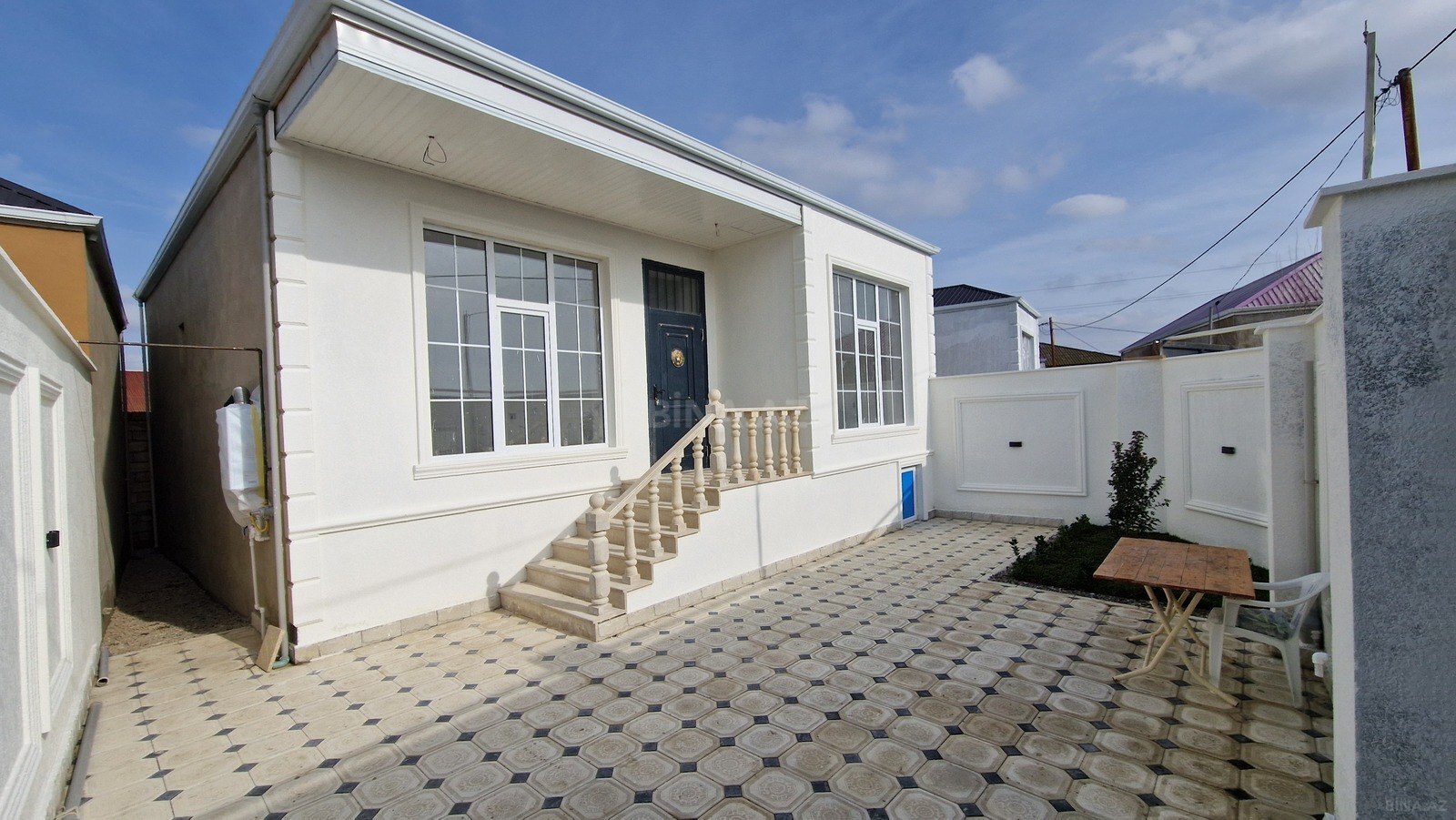 Bulbule qesebesi, Baki – aeroport yolu, esas yoldan 100 metr mesafede, “Ag ciceym” arxasi, 3 sot erazide, 2 mertebeli, umumi sahesi 250 kv m olan heyet evi satilir. Orta temir, 7 otaq, qurasdirilmis metbex mebeli, 2 sanuzel (+ heyetde), qaz, su, isiq daimidir, istilik sistemi kombi. Senedler qaydasindadir CIXARISH var.