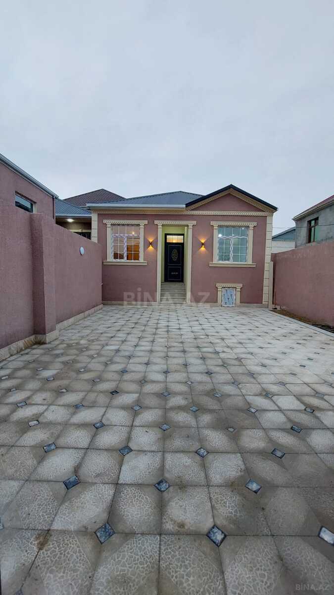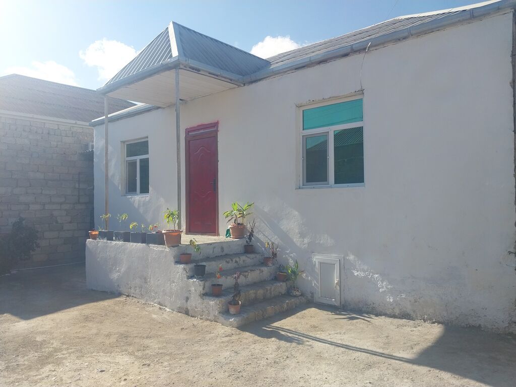 Həyət evi - Tək mərtəbəli, eyvanlı giriş: pilləkənlərlə qaldırılmış yaylı səki və dam örtüklü eyvan. - 2 böyük pəncərəli fasad, plastik (PVC) pəncərələr. - Qırmızı giriş qapısı, dam örtüyü metal profilli. - Geniş beton həyət: avtomobil üçün rahat döngə və parklanma imkanı. - Həyətyanı sahə: dibçək və dekorativ bitkilər, kənar tə - Divarlarla tam hasarlanmış, darvazalı. Sadə planlı, işıqlı həyət evi axtaranlar üçün rahat məkan.s bine bollug fikiri cidi adamlar naeahad elesin cuzi endirim olacag mecburi satmiram makler deyilem her evin bir qismeti var alanin aa satanin da alah xeyirini versin