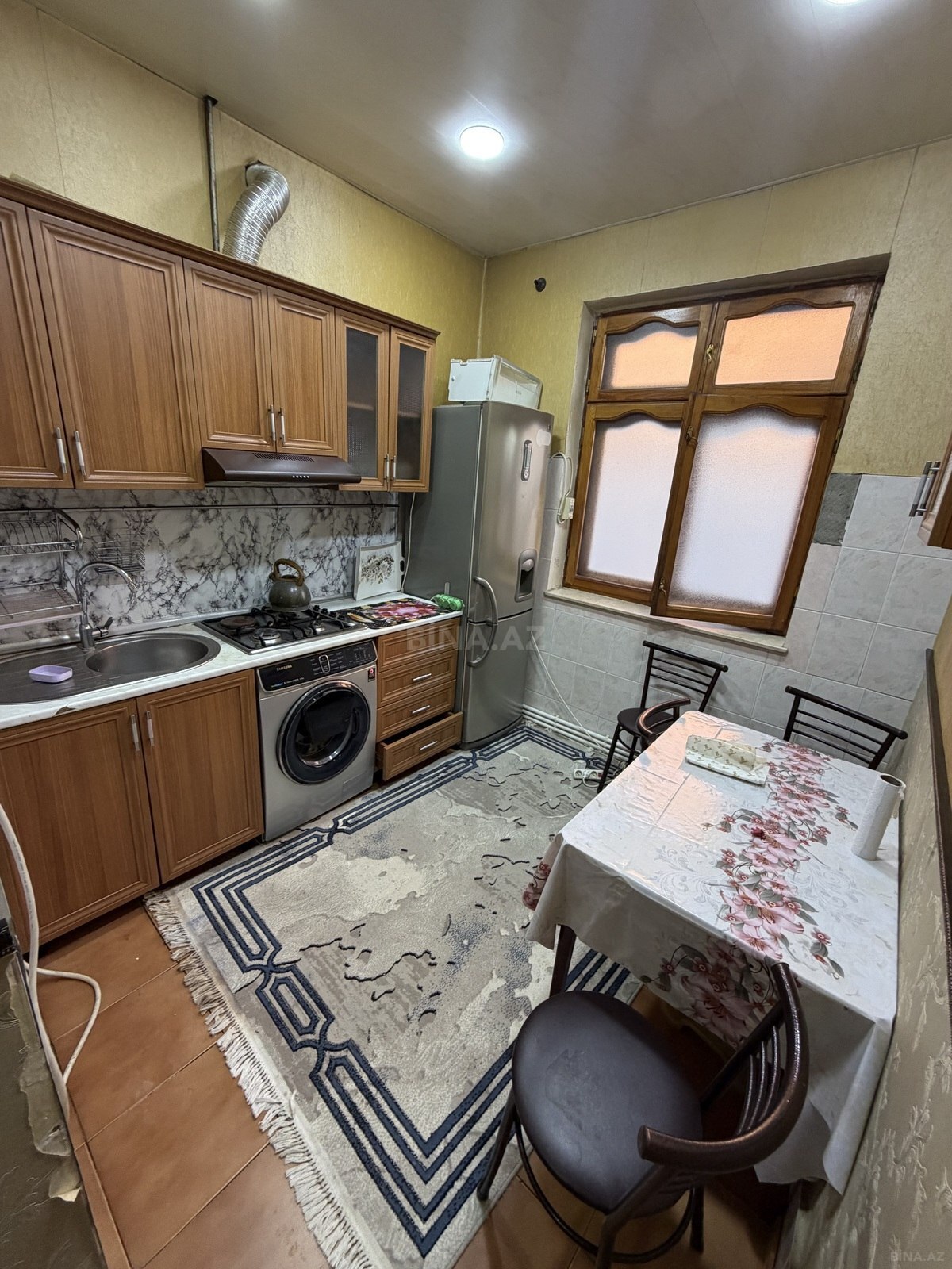 Salam.Bu kohne sekillerdi.Eve yeni kombi cekilib ve kondisioner qoyulub.Evde yaşamaq ucunde her serait var.Heyete masinda daxil ola bilir.Kirayeşin bu hefte çıxacaq.Ev Hollywood şadlıq sarayınnan paralel küçede yerleşir.