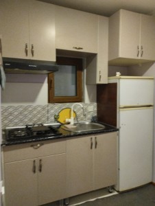 - Açıq mətbəx/bulaq: kafel üzlü iş sahəsi və kranlı su nöqtəsi.