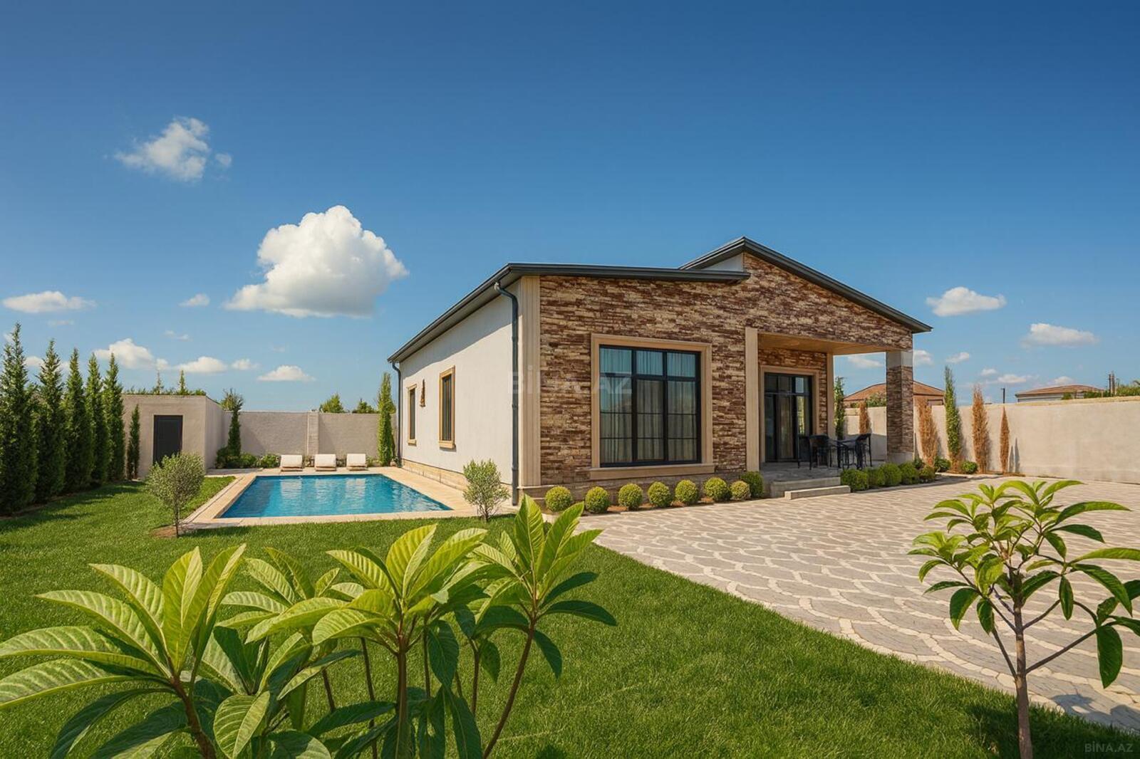 Mərdəkan qəsəbəsində 3 yatağ otağı 1 böyük salon əlavə olarağ həyətdə bisetka yay mətbəxi manqal var havuz var filterlidir