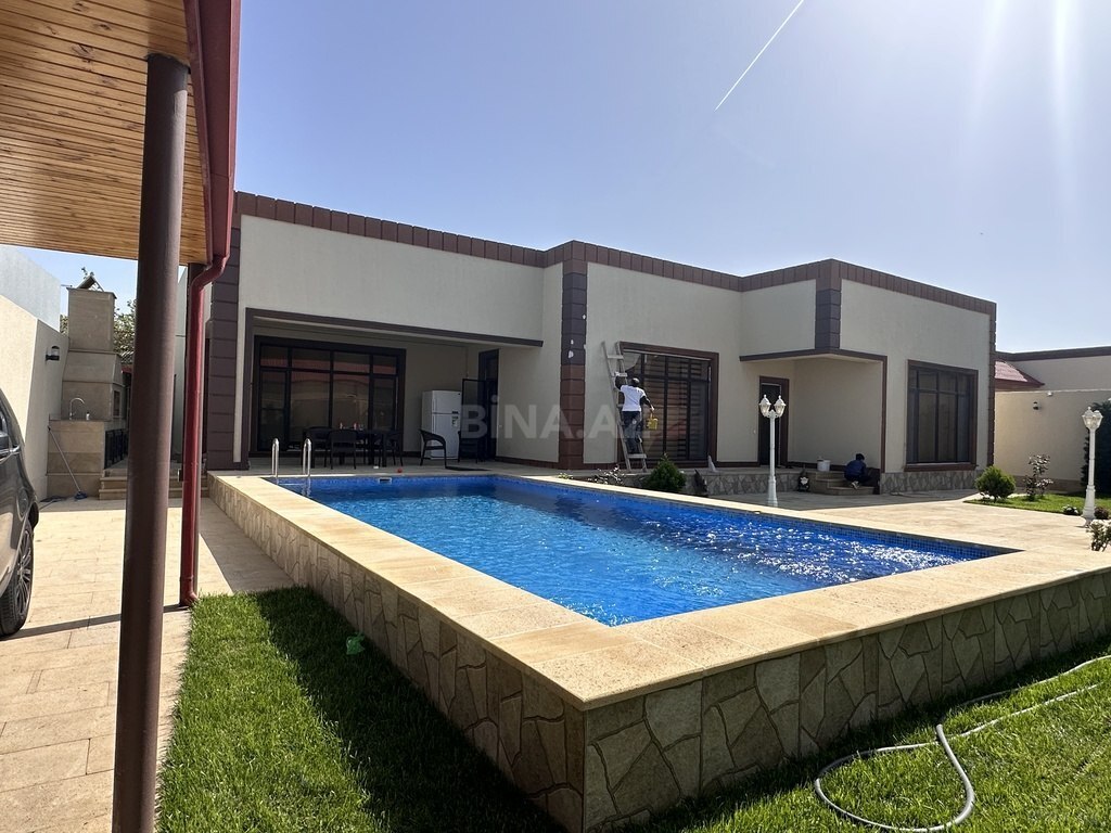 Merdekan yeni qosa qala restorana yaxin mesafede yeni tehciz olunmus modern 2 mertebe 3 yataq otaqi 1 qonaq zali 3 sanuzel filterli hovuz bisteka manqal decorativ agaclar bag yeni tiklib yasayis olmuyub buyrub zeng ede bilersiz