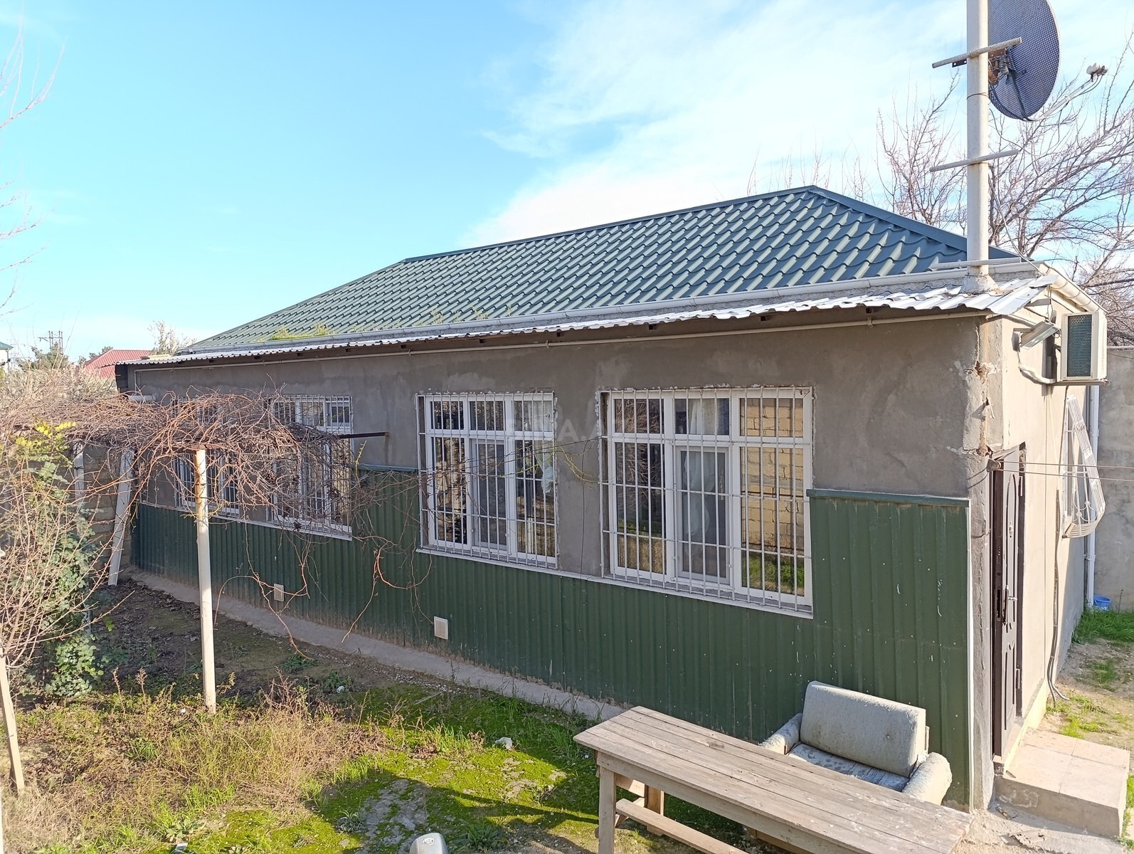 Həyət 6 sotdur.Həyətdə həmçinin təmirsiz böyük evdə var.Bu ev 1 mərtəbəlidir və təmirlidir.Suyu,qazı,işığı var.Kombisi,kondisioneri,televizoru var.Evdə demək olar əksər əşyalar mövcuddur.Uzun müddətli qalacaq namizədlərə üstünlük verilir.