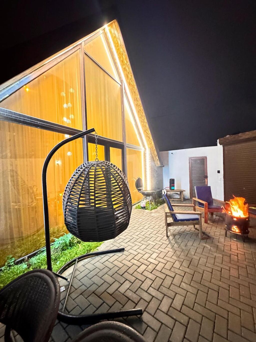 - Fasada və interyerə uyğun daş və şüşə kombinasiyası, estetik gecə işıqlandırması.