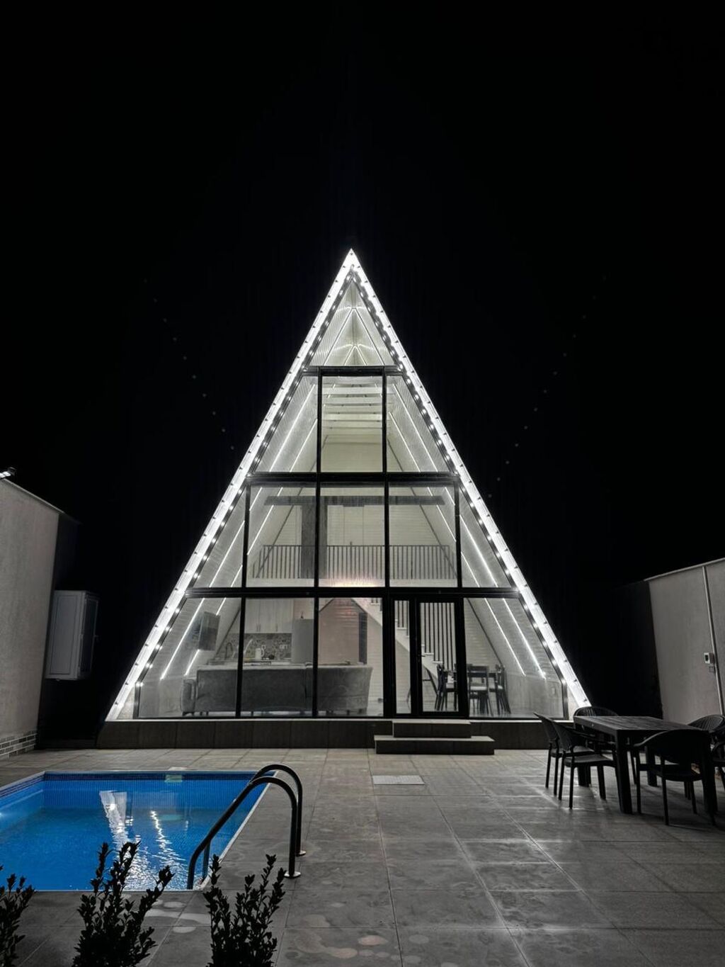 - Hovuz: geniş açıq hovuz, günəşlənmə zonası, dekorativ işıqlandırma üçün fənərlər.