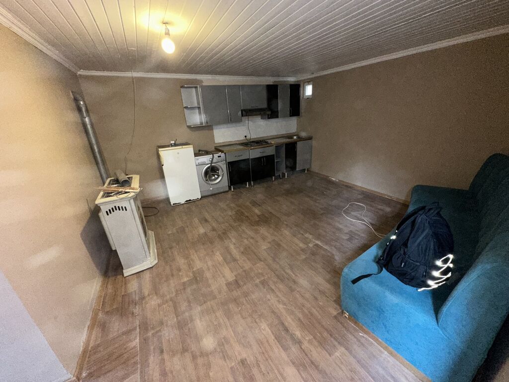 Kirayə üçün 2 otaqlı həyət evi Xüsusiyyətlər: - Ayrı, bağlı həyət sahəsi; paltar asmaq üçün məftillər, işıqlandırma. - Dəmir giriş qapısı, dekorativ daş üzləmə. - Daxili koridor/zal: hündür tavan, LED işıq, divar rəfləri. - Mətbəx hissəsi üçün yer ayrılıb; soyuducu və kiçik masa mövcuddur. - Hamam/tualet daxildə. - Su, işıq xətləri çəkilib; qaz sayğacı və isinmə üçün avadanlıq qoşulması üçün çıxışlar görünür. - Pəncərə və qapılar plastik/alüminium profillidir. Uyğundur: cütlüklər üçün sakit, müstəqil məkan axtaranlara. - Kiçik büdcə ilə şəxsi həyəti olan ev istəyənlərə.