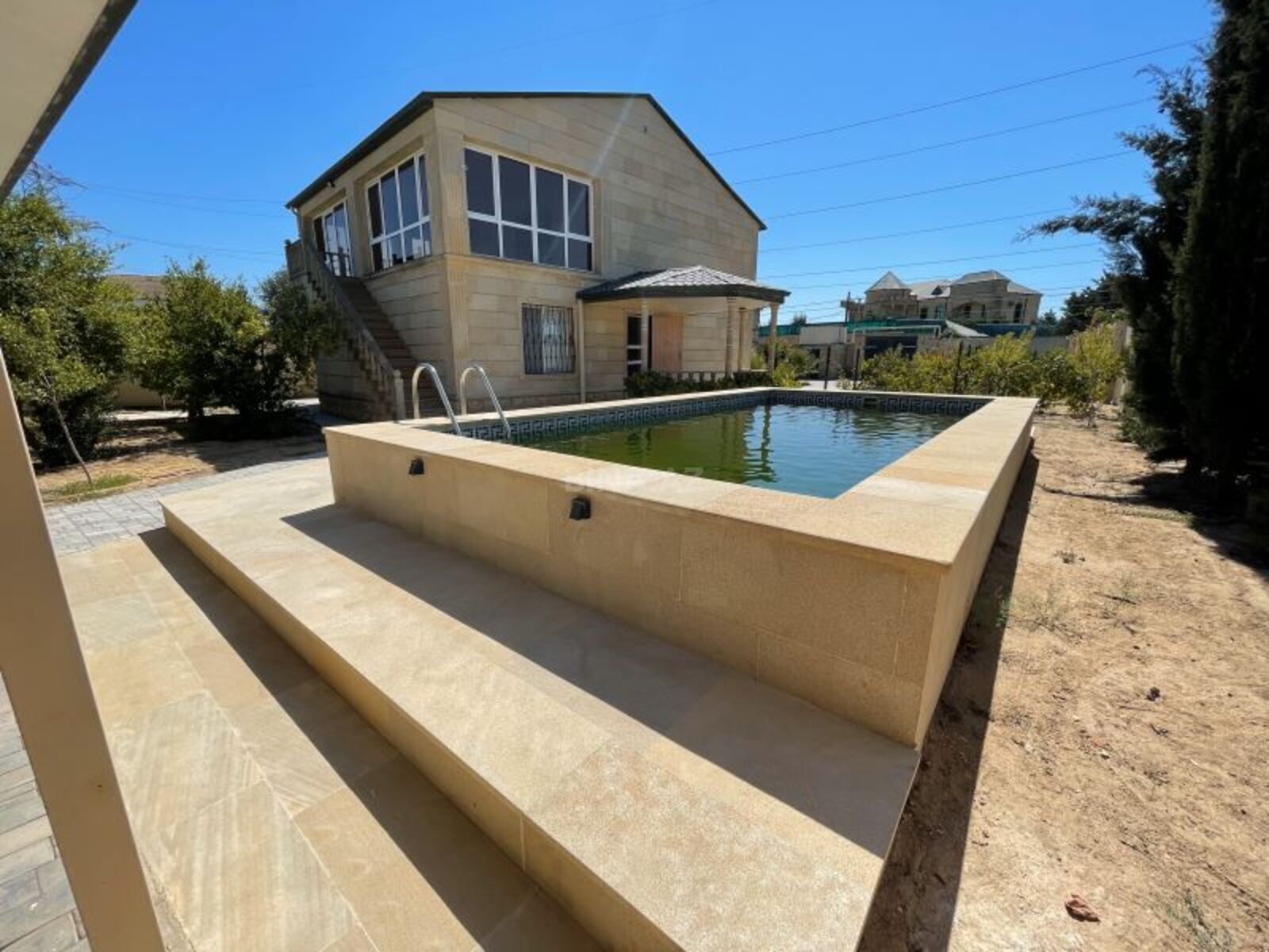 Merdekan bravo teze yola yaxin perstij mekanda vip serait 3 yataq 1 qonaq modern metbex wifi kondisaner filterli hovuz yelencek lejanka bisetka veranda balkon manqal decorativ agaclar vs buyrub zeng ede bilersiz