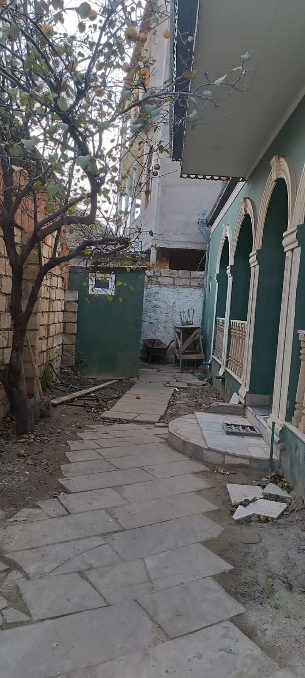 - Həyət daş hasarlıdır