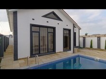 Mərdəkan ərazisində İSTİ HOVUZLU, tam şəraitli, səliqəli bağ evi günlük və aylıq kirayə verilir. Ev yeni tikilib, yeni təmir olunub, bütün mebel və əşyalar yenidir. İstirahət üçün hər bir şəraiti var. 3 yataq otaqı, 1 mətbəxt, 2 sanuzel var. Evdə Tv kabel, internet, kondisionerlər, paltaryuyan və s mövcuddur. Həyətdə 1 sanuzel, manqalni, stol stul, filterli isti hovuzdan istifadə edərək istirahət edə bilərsiz.Əsas yoldan 1km aralıda sakitçilik ərazidə yerləşir. Bron etmək üçün əlaqə saxlaya bilərsiz